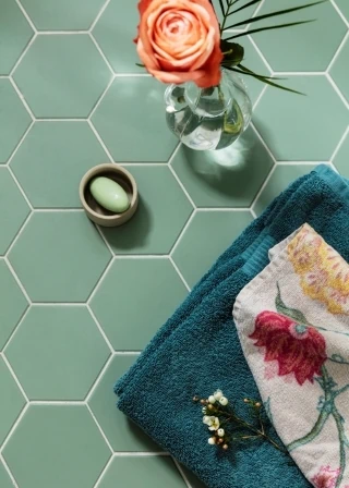 Den luftiga trappan med ljusinsläpp leder upp till mellanplanet med master bedroom, bastu i direkt anslutning till badrummet, gästrum och Nellies rum. Bägge badrummen har ett vackert klinkergolv i grönt hexagonmönster och ett kakel på väggarna som är vackert lagt i ett halvförband, som ger en exklusiv känsla. Den grågröna färgen går igen i flera detaljer i huset, såsom skåpluckorna i förvaringsskåpet på mellanplanet. Ljuset letar sig in i alla vrår.