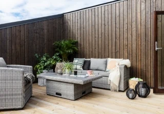 På övervåningen väntar förutom smart förvaring och en lugn vrå, den väl tilltagna takterrassen som är inredd med medelhavsväxter, en stor loungesoffa, bord och två bekväma fåtöljer. Här kan familjen njuta av vårens värmande sol och blicka ut mot den natursköna utsikten mot Vallentunasjön.